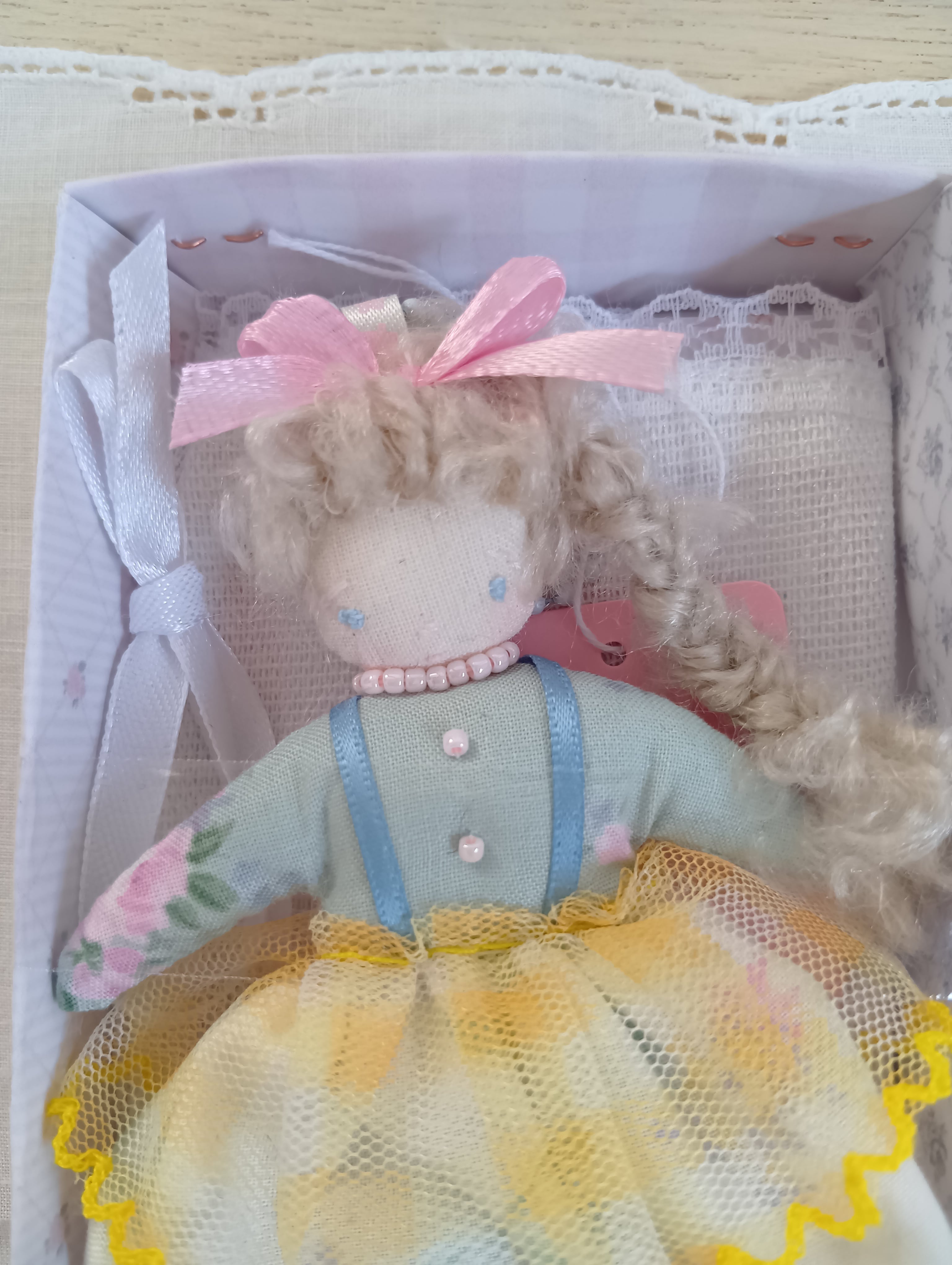 こちらのドールは、手のひらに収まるサイズ(約10cm)で、ボールチェーン付きなので、お出かけのお供やドールのおもたせにもぴったりのアイテムです