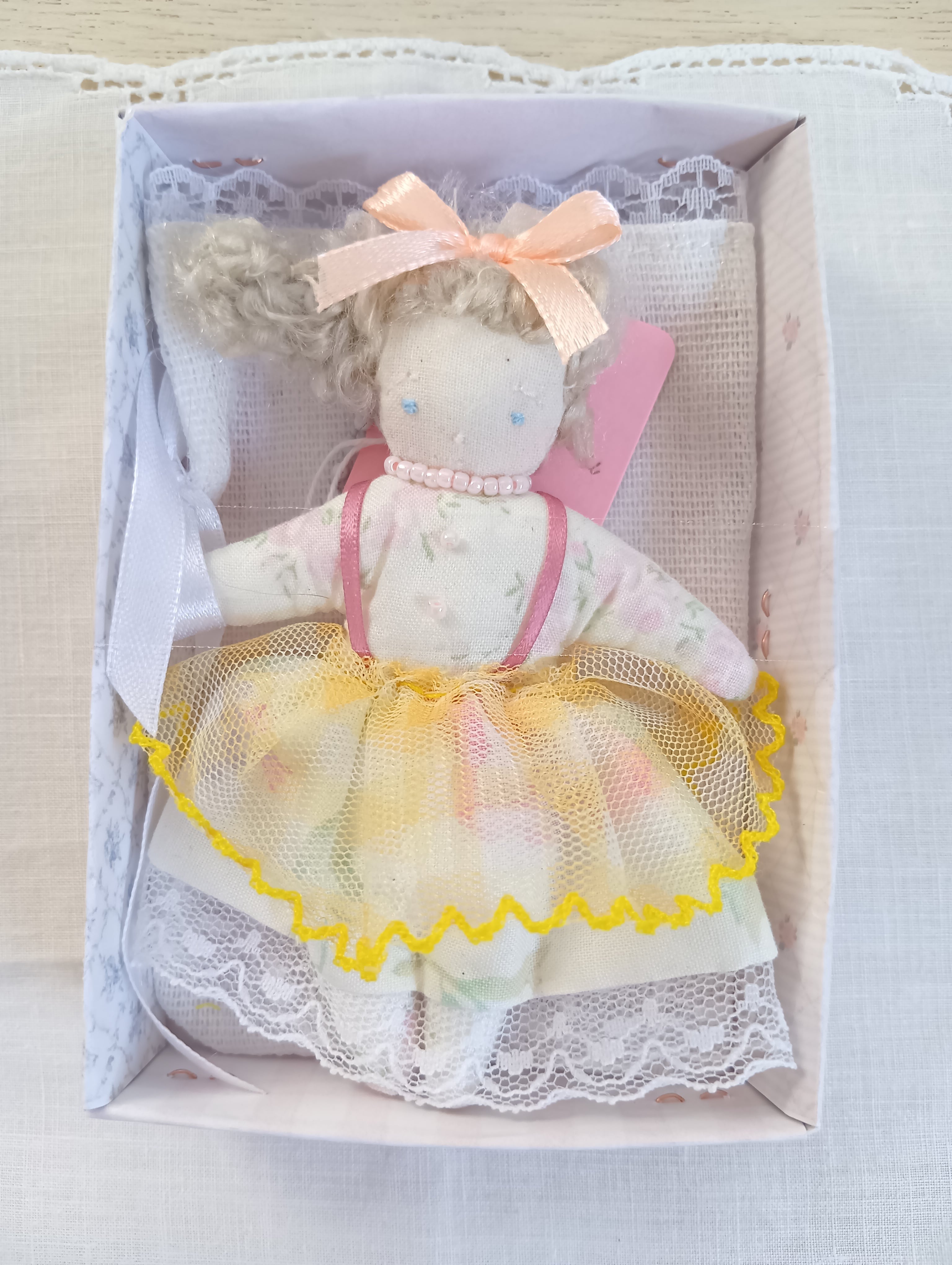 こちらのドールは、手のひらに収まるサイズ(約10cm)で、ボールチェーン付きなので、お出かけのお供やドールのおもたせにもぴったりのアイテムです
